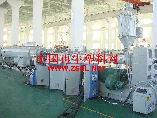 PE给水燃气管材挤出生产线本公司生产的PE管材生产线采用高效挤出机,采用电脑控制,螺杆采用带屏障和混炼头的综合混炼元件,机筒采用新型开糟机筒,塑化和混炼效果好,保证高速和高性能的挤出,另配有装配标记线的专用挤出机。为PE大口径厚壁管材模头,选用国际上最先进的螺旋式或蓝式模头技术,挤出稳定可靠,采用水膜润滑和水环式冷却,以适应PE物料的要求,确保高速生产厚壁管时直径和圆度的稳定,带有椭圆校正装置,专门设计的多级直空及冷却装置,特殊的高压冷却系统,保证了大口径,高压力等级PE管材的挤出。牵引机根据制管规格可用三爪式、六爪牵引机,采用欧洲进口调速系统运转稳定可靠,切割机采用行星切割,电脑控制自动化程度高、免维护周期长。公司依据多年的开发设计和生产经验,精心制造的PE管材挤出生产线,管径范围从Φ12~Φ800mm,广泛应用于城市燃气管和给水管。